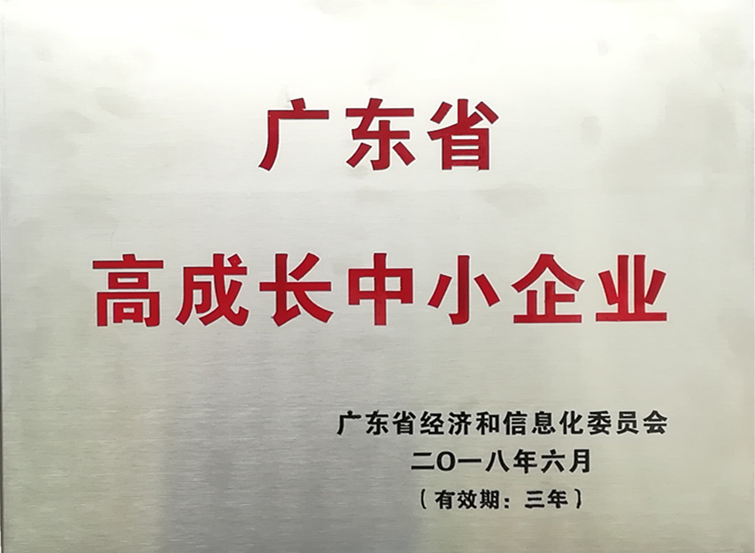 2018年6月,公司由广东省经济和信息化委员会认定为广东省高成长中小企业。